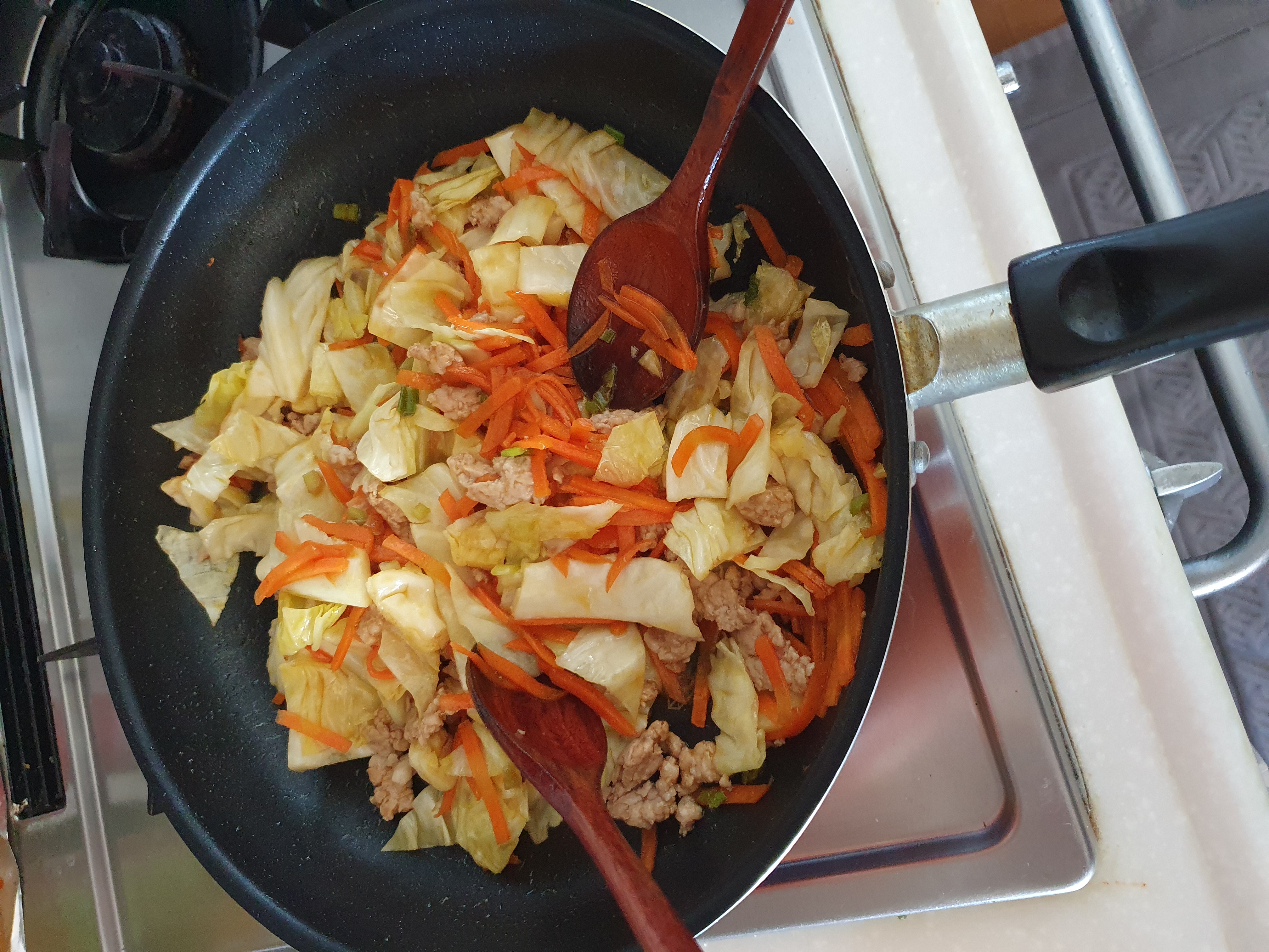 오늘은 돼지고기 양배추볶음 만들어 먹었어요.